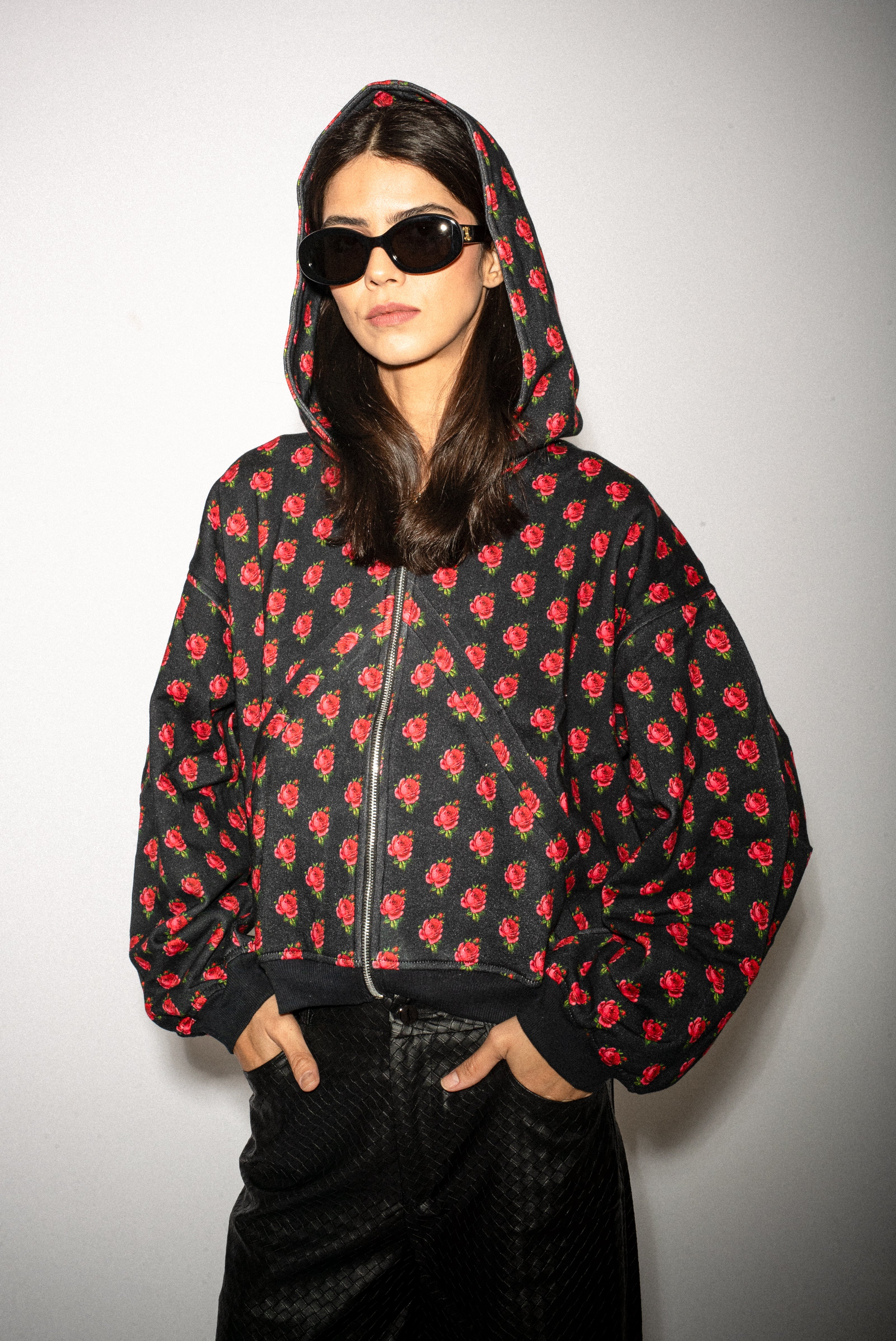 OVERSIZED HOODIE JACKET WITH ZIP FASTENING, AN OVERSIZED HOOD, TWO SIDE WELT POCKETS, LONG SLEEVES, AND RIBBED CUFFS