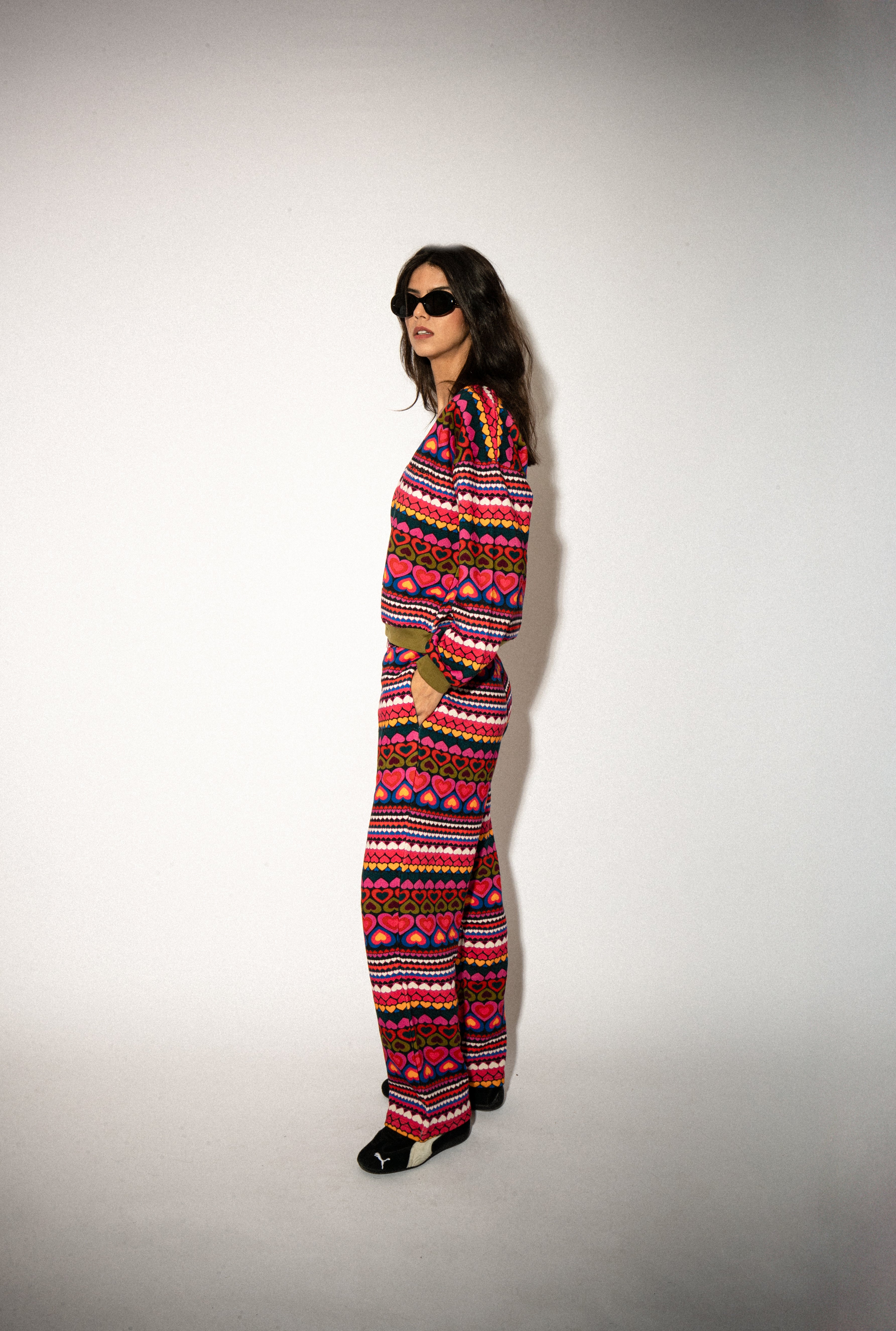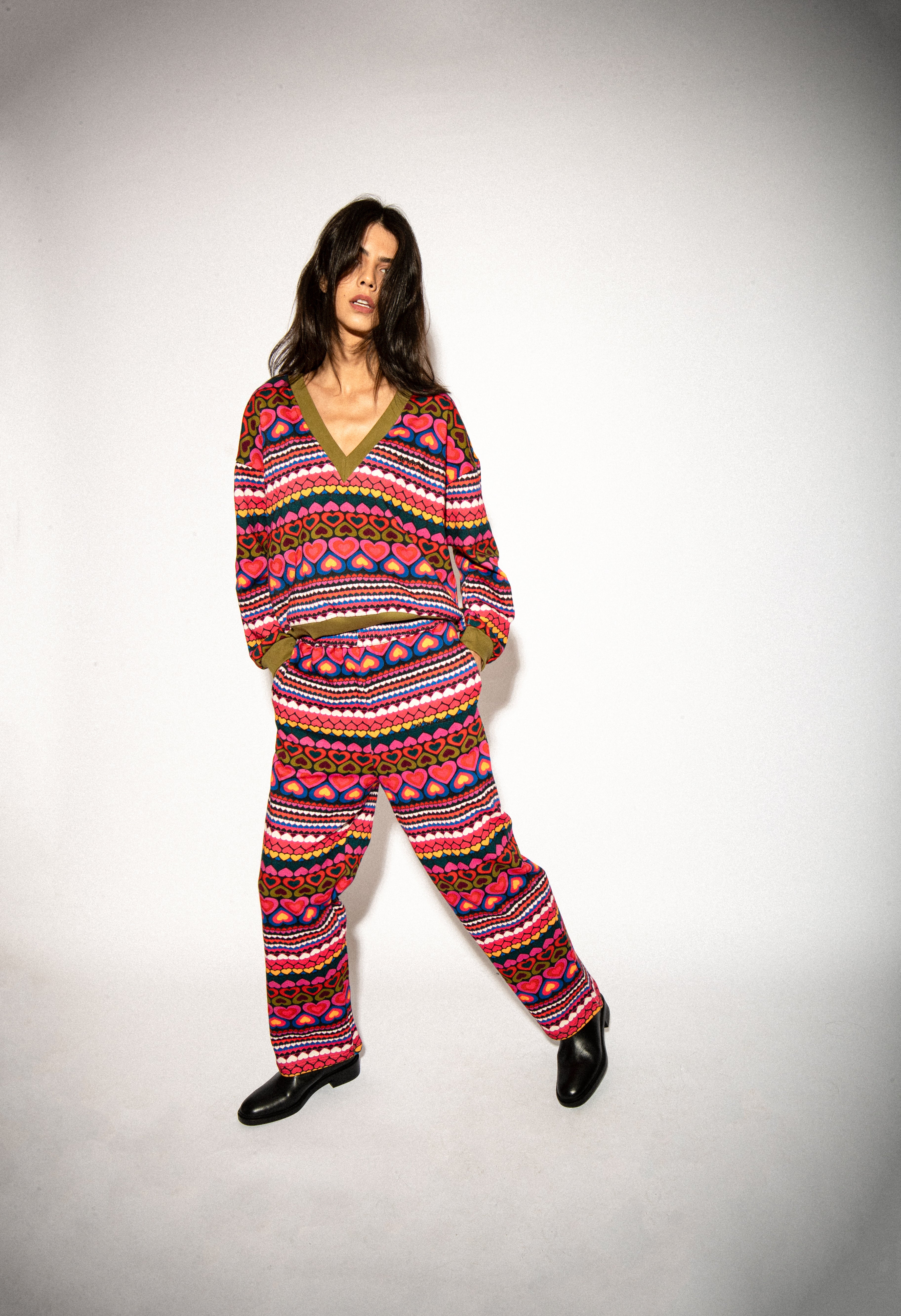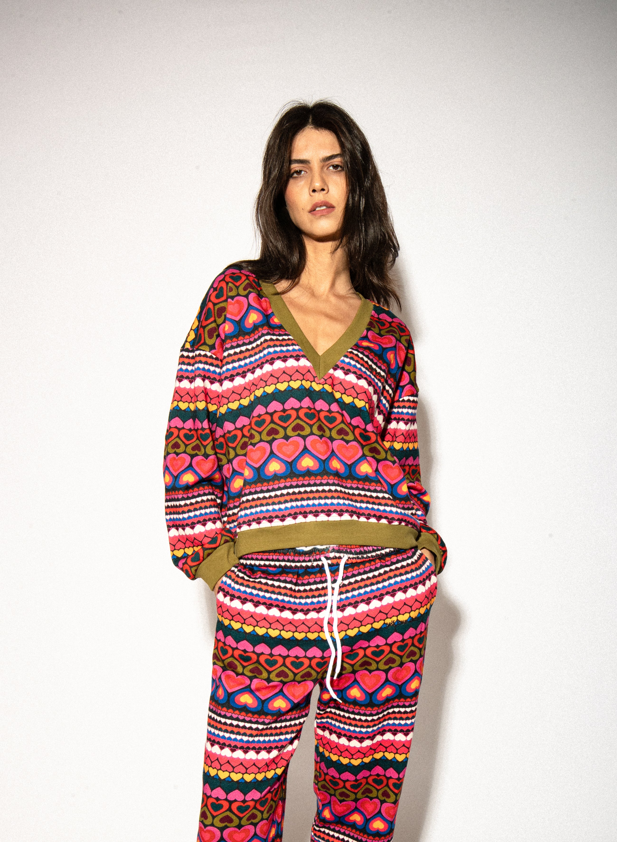 OVERSIZED SWEATER WITH DEEP V NECKLINE AND "SELF LOVE CLUB .." EMBROIDERY AND RIBBED CUFFS