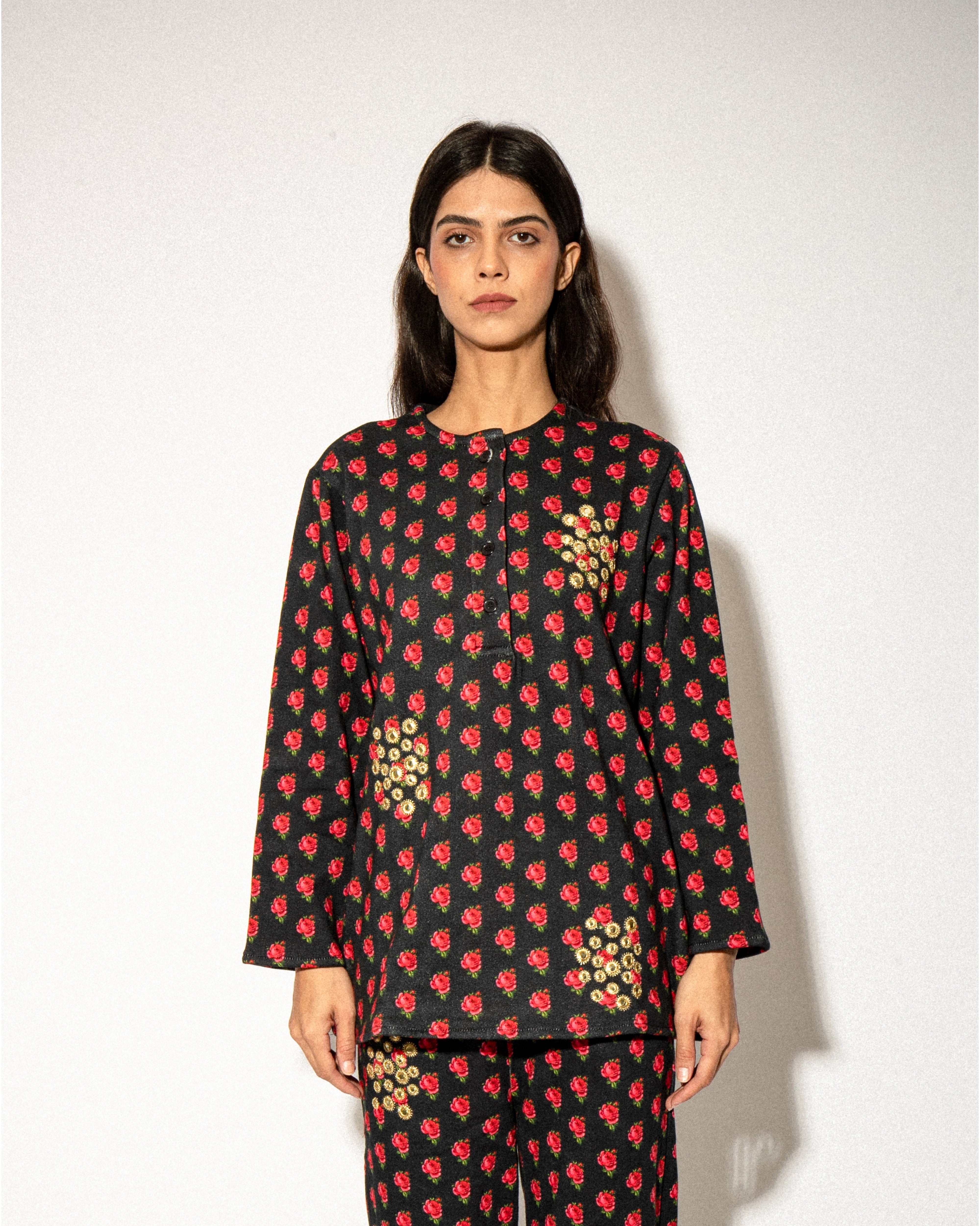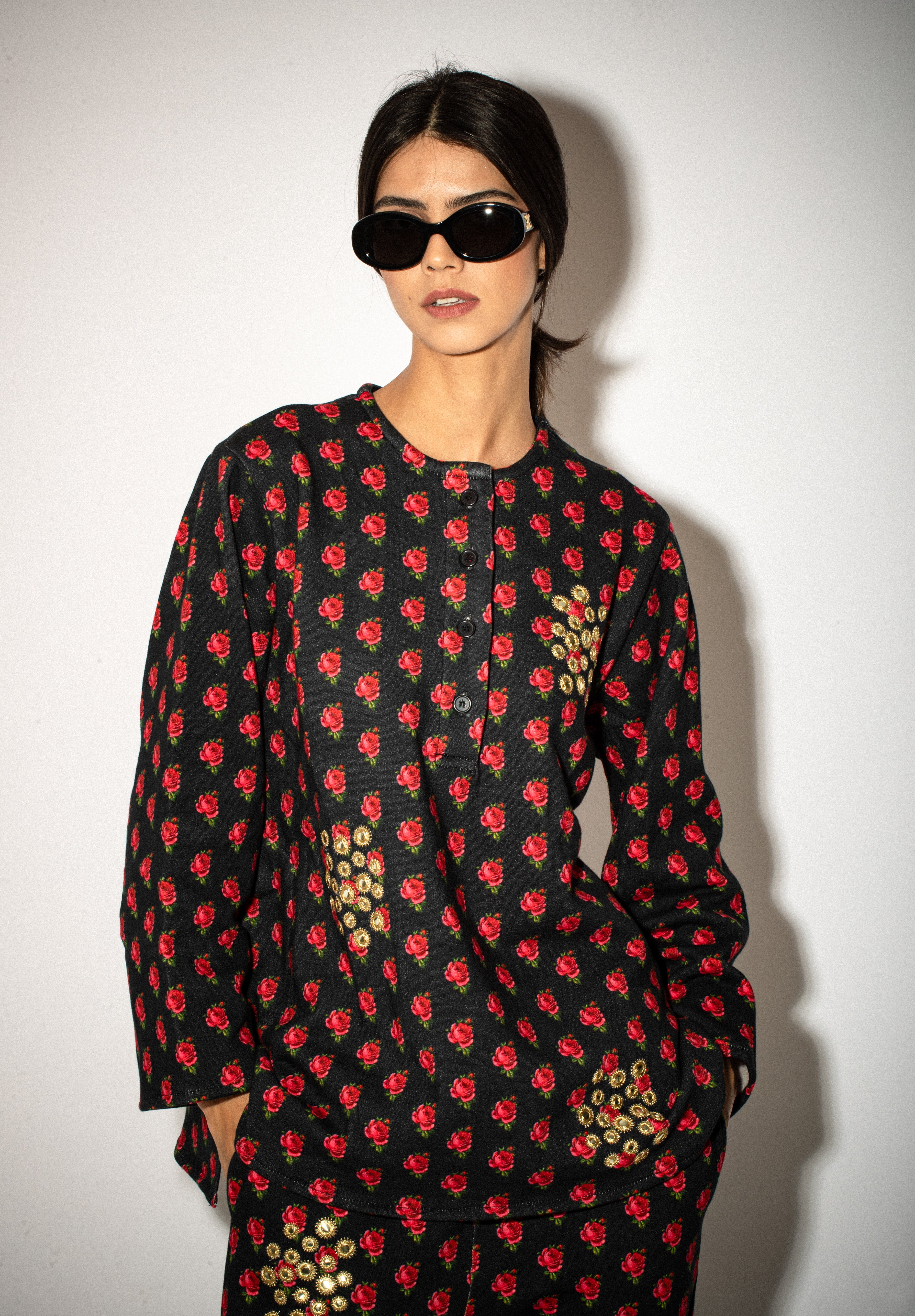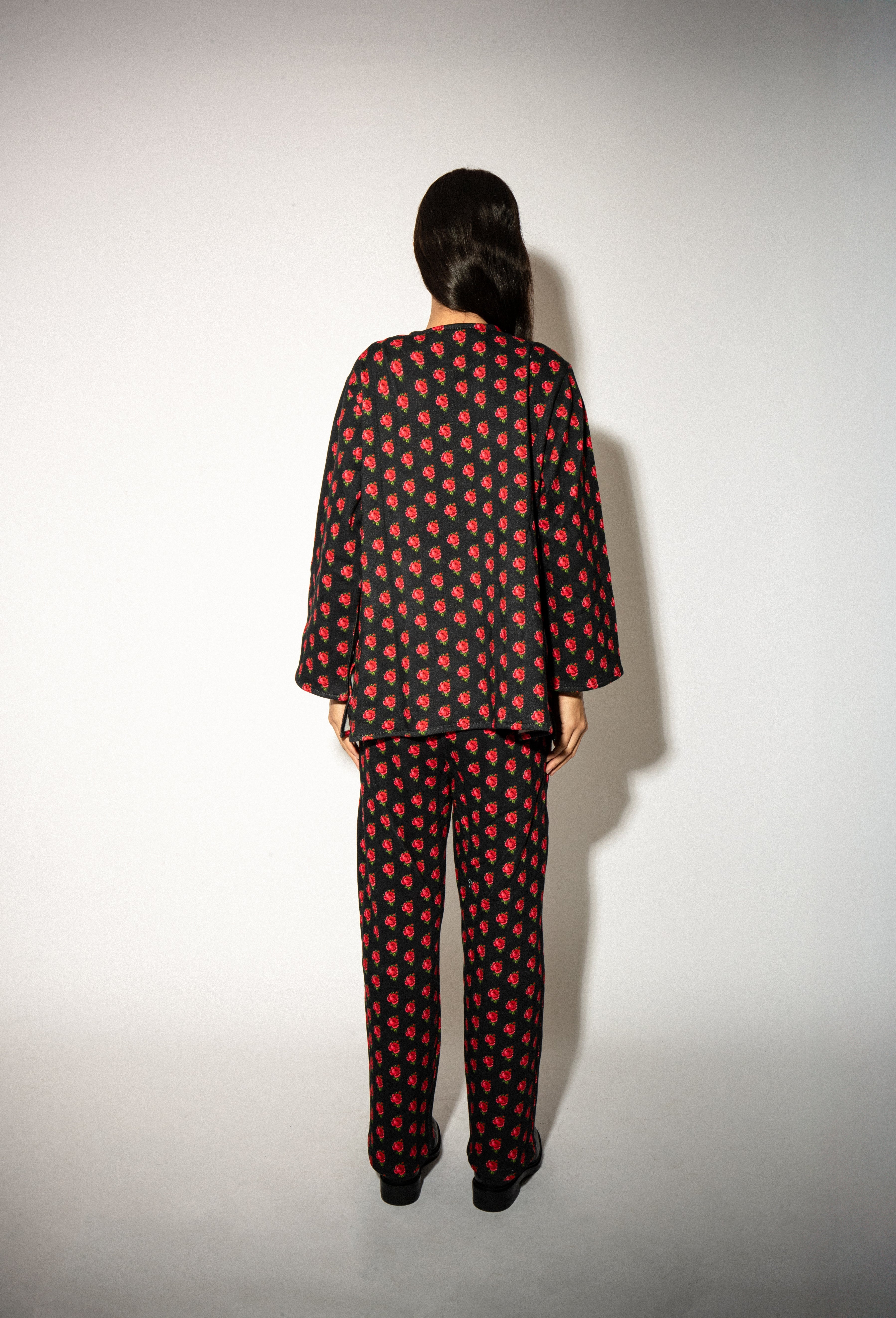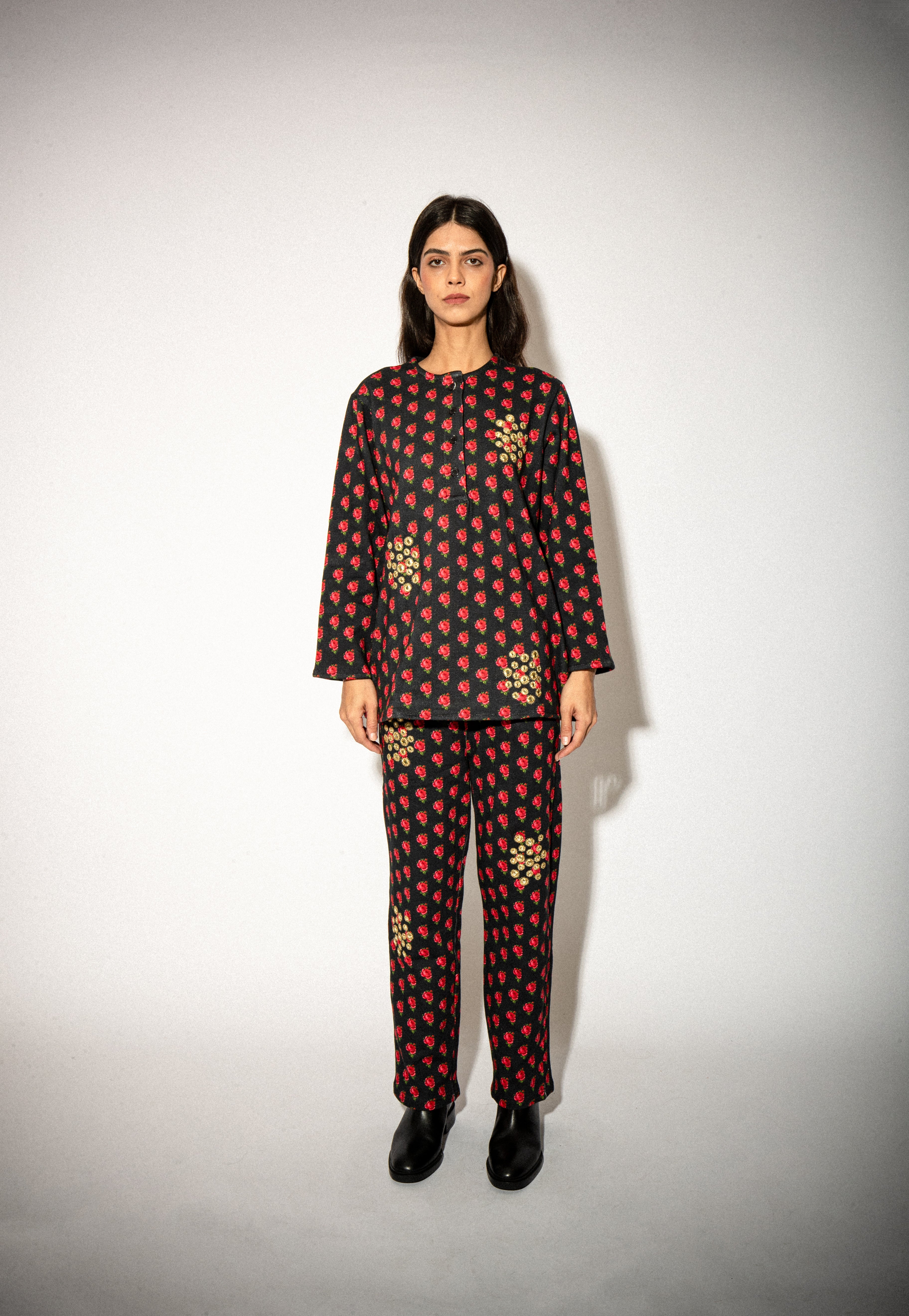 CLASSIC TOP AND PANTS SET EMBELLISHED WITH HAND-STITCHED EMBROIDERED MIRRORS